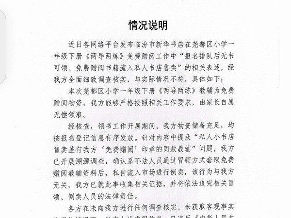 临汾新华书店关于免费赠阅书籍流入私人书店售卖说明