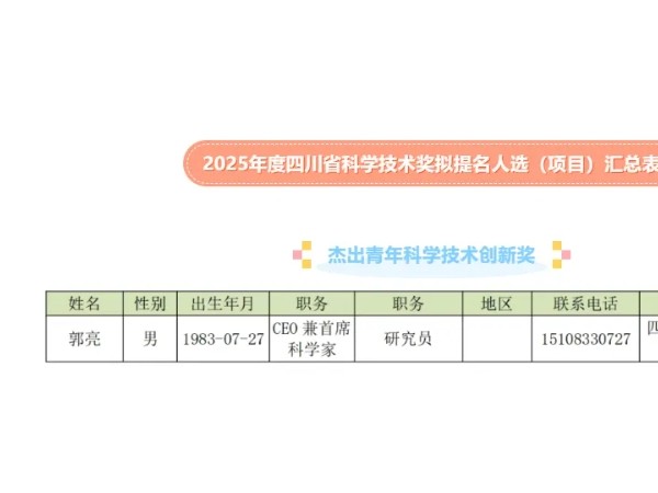 四川省山西商会轮值会长郭亮拟提名推荐杰出青年科学技术创新奖