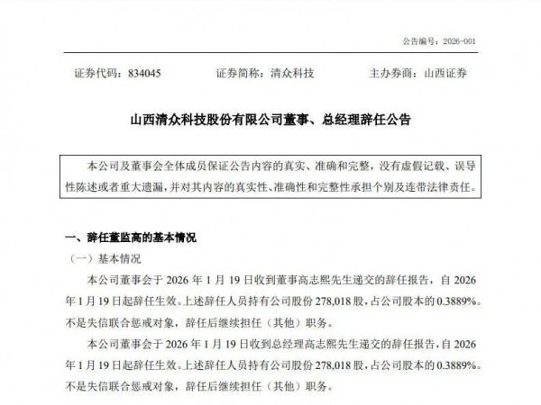 山西清众科技迎重要人事调整