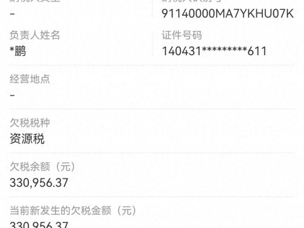 山西永红煤业欠资源税33万多