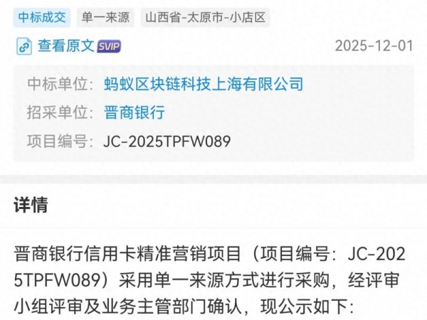 蚂蚁区块链成为晋商银行信用卡精准营销供应商