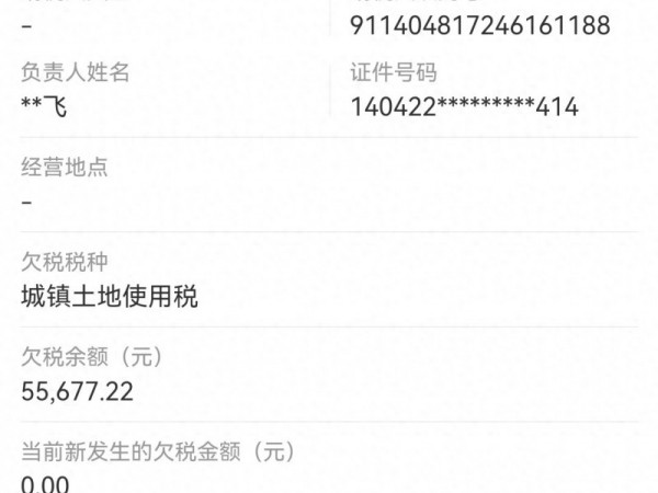 山西盛华集团科峰建材欠税5.5万