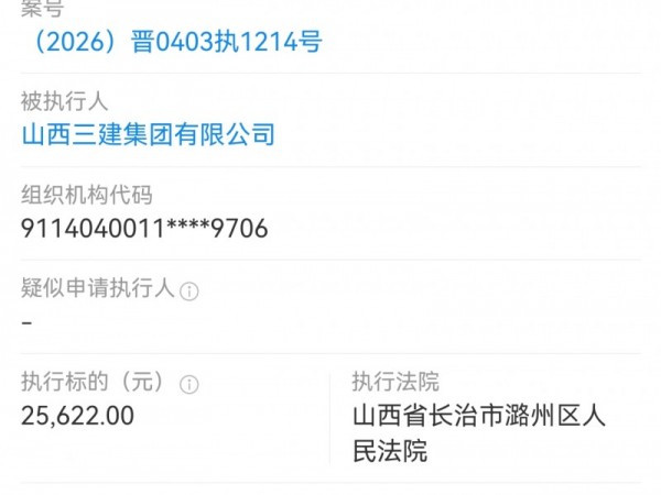 山西三建集团被长治潞州区法院执行2.5万多