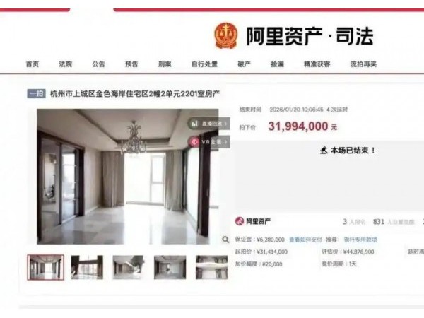 卖了3199万元!德信集团董事长胡一平杭州江景豪宅被拍卖抵债