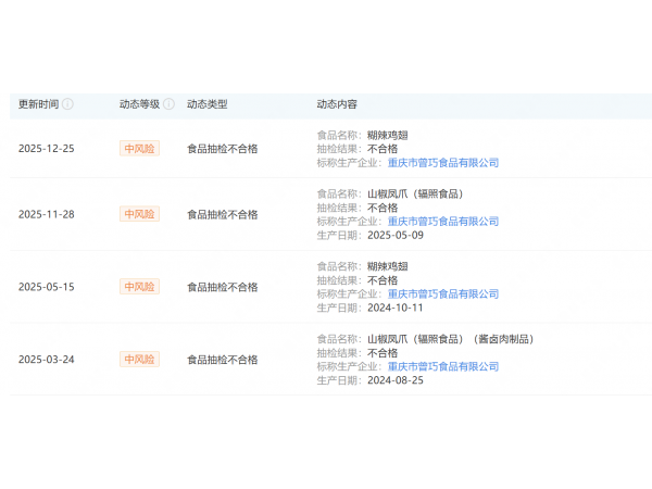 315曝光漂白鸡爪公司曾巧食品多款产品抽检不合格