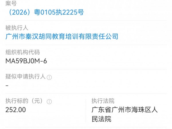 广州市秦汉胡同教育培训被珠海区法院执行252元 母公司被执行2144元