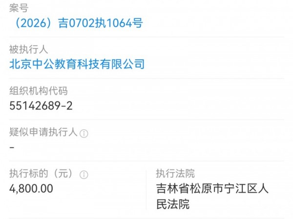 北京中公教育被执行4800元