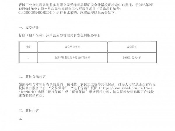 山西祥达餐饮中标泽州县应急管理局食堂