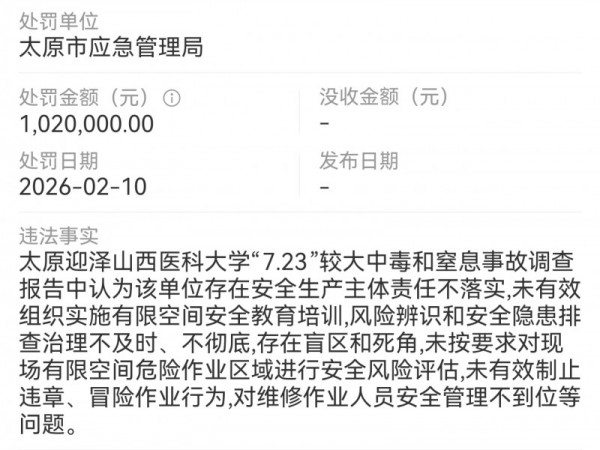 山西凯晟科贸被太原市应急管理局处罚102万