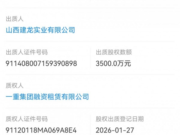 山西建龙实业出质股权3500万