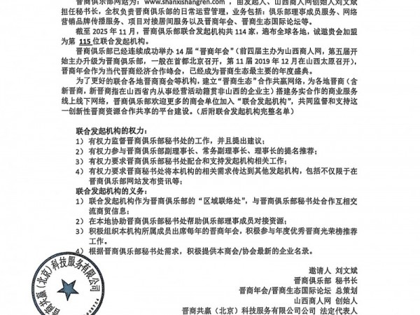 晋商俱乐部——致力于建设服务创新型商业化晋商生态
