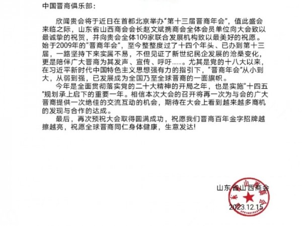 山东省山西商会预祝2023第十三届晋商年会圆满成功