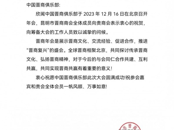 昆明市晋商商会预祝2023第十三届晋商年会圆满成功