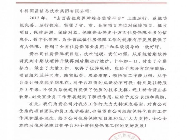 山西省住建厅给这家晋商企业发了一份表扬信