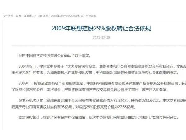 联想控股内网发声明且拉上中央巡视组垫背:2009年联想控股29%股权转让合法依规
