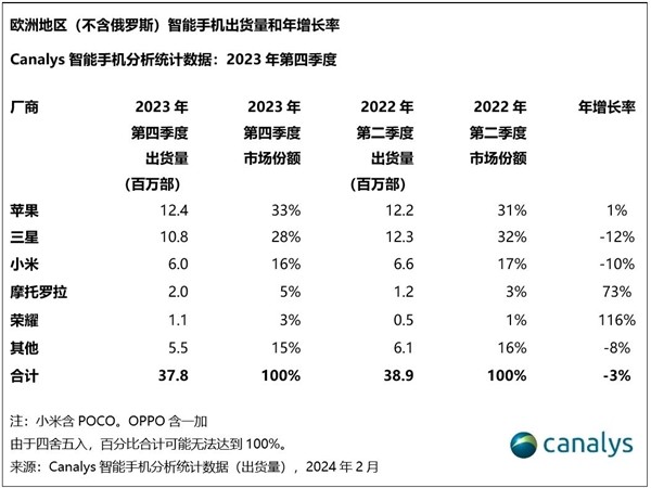 出货量翻倍!荣耀历史首次跻身欧洲手机市场前五