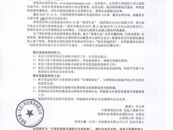 热烈欢迎“承德市山西商会”加盟为中国晋商俱乐部第120位联合发起机构