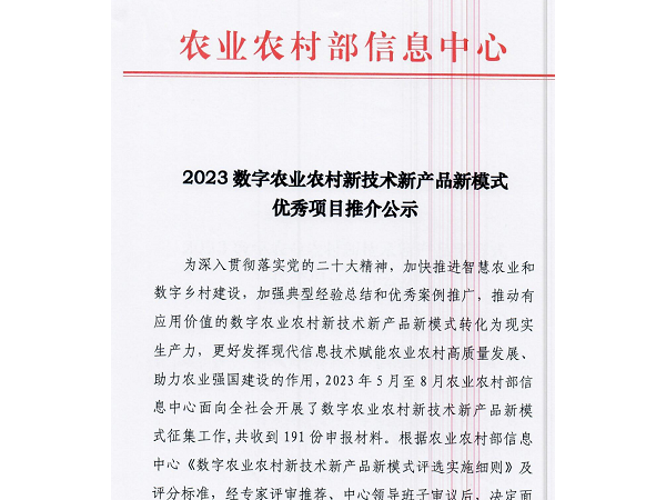 科芯“AIPA”获2023数字农业农村新技术新产品新模式优秀项目