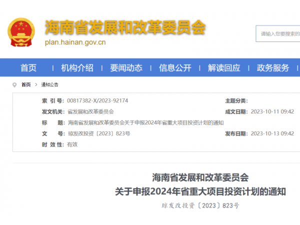海南省山西商会商会发布|海南启动2024年省重大项目投资计划申报