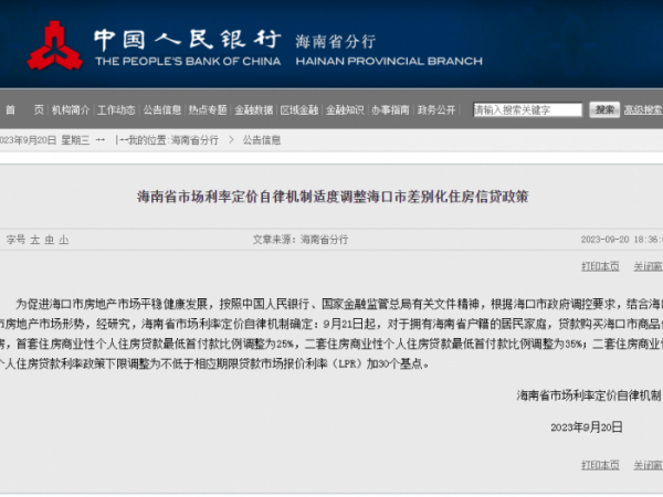 海南省山西商会发布|今日起,海南省户籍居民家庭在海口购买首套住房商贷最低首付降至25%