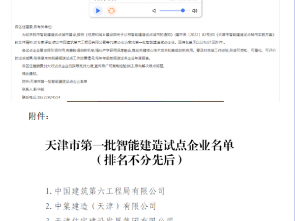中冶天工获评天津市第一批智能建造试点企业