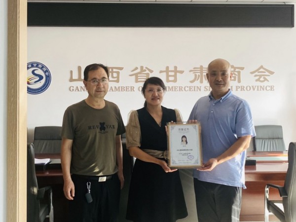 晋商俱乐部和山西省甘肃商会共同向2021晋商商帮优秀工作者张彩萍颁发荣誉奖牌