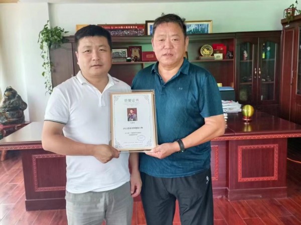 山东省山西商会烟台办事处向2021百名优秀晋商人物马建杰颁发荣誉奖牌