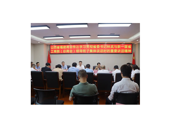 山西省福建商会学习贯彻林武书记重要讲话精神,省委统战部副部长、省工商联党组书记陈旭忠,省工商联副主席李剑英莅临指导