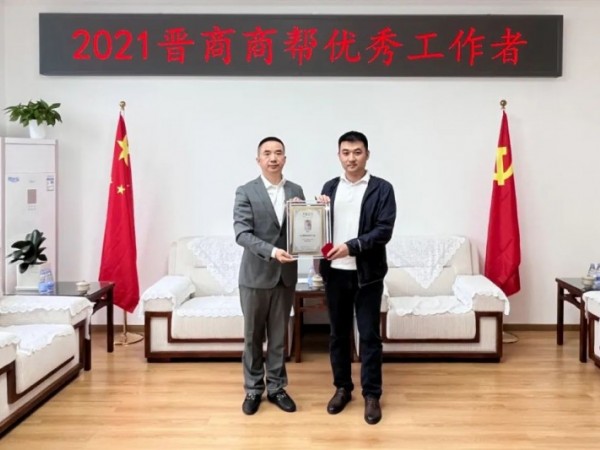 重庆市山西商会向2021晋商商帮优秀工作者晋小东颁发荣誉奖牌