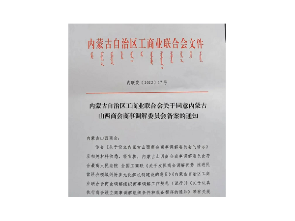 好消息!内蒙古山西商会商事调解委员会获准成立(总第649期)