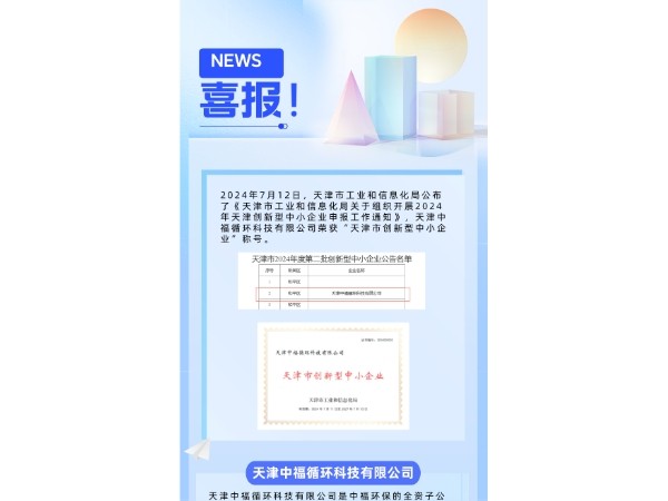 热烈祝贺天津中福循环科技有限公司获评“天津市创新型中小企业”