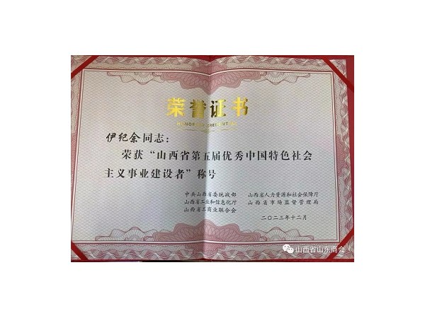伊纪余会长荣获“山西省第五届优秀中国特色社会主义事业建设者”称号