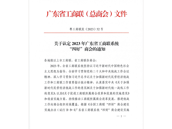 湛江市山西商会荣获2023年广东省工商联“四好”商会