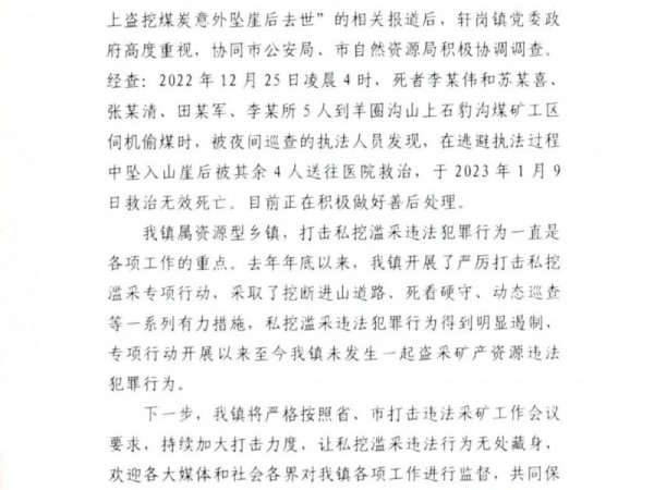 关于媒体反映“山西原平轩岗镇盗采资源”相关问题的答复