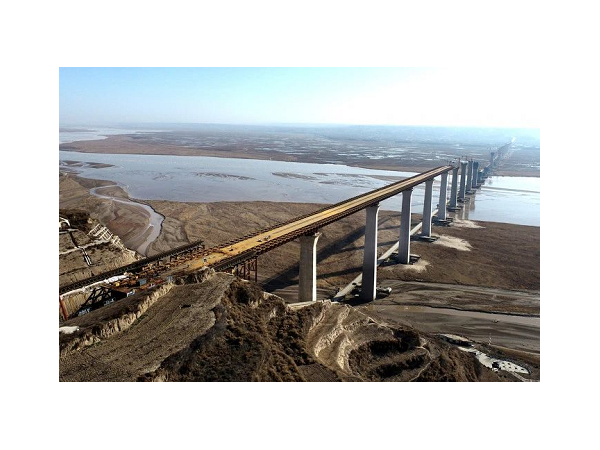 临猗黄河大桥建设,水中承台已全部施工完成