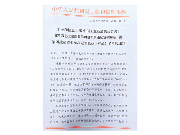 第七批国家级制造业单项冠军企业(产品)公布!山西省8家企业入选