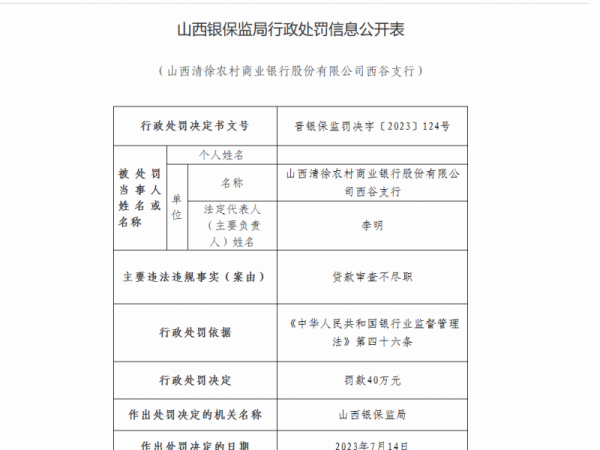 山西6家农商银行被罚270万元