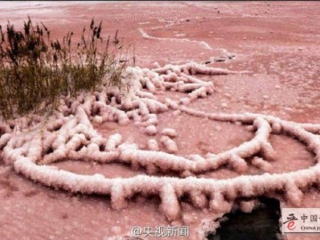 山西运城盐池出现“硝凇”奇观