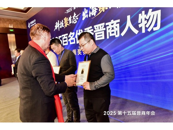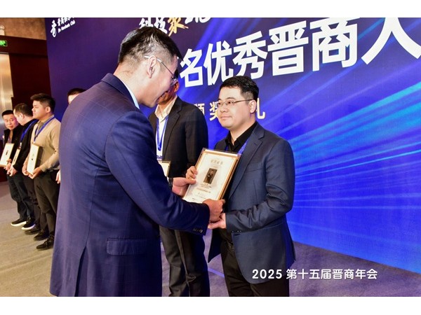 广东精赢有方科技服务有限公司总经理陈昊出席2025第十五届晋商年会 刘文斌为其颁发2025百名优秀晋商人物荣誉证书
