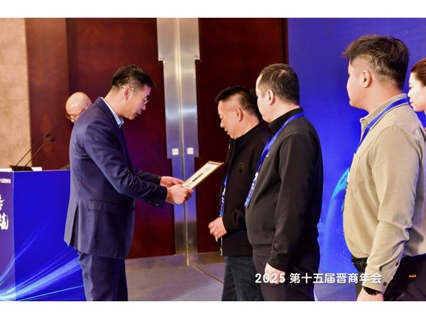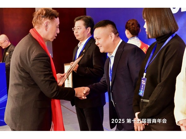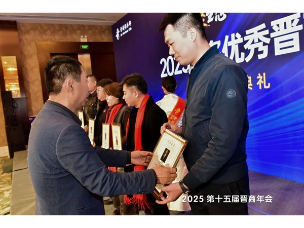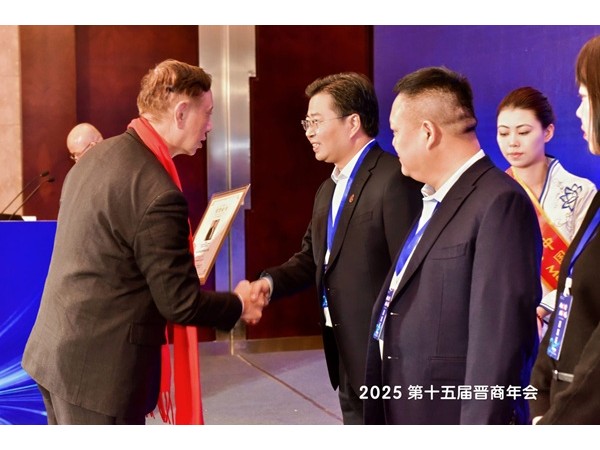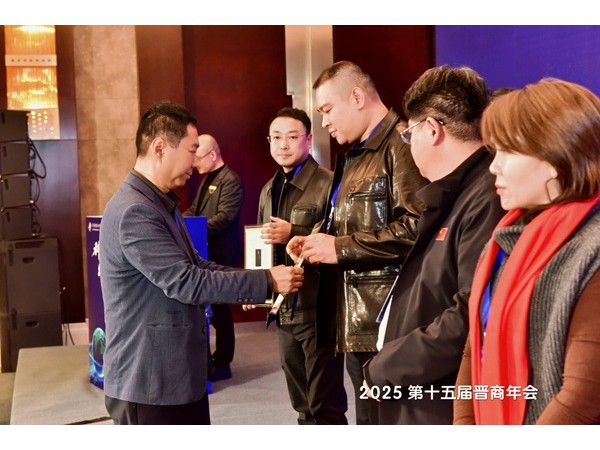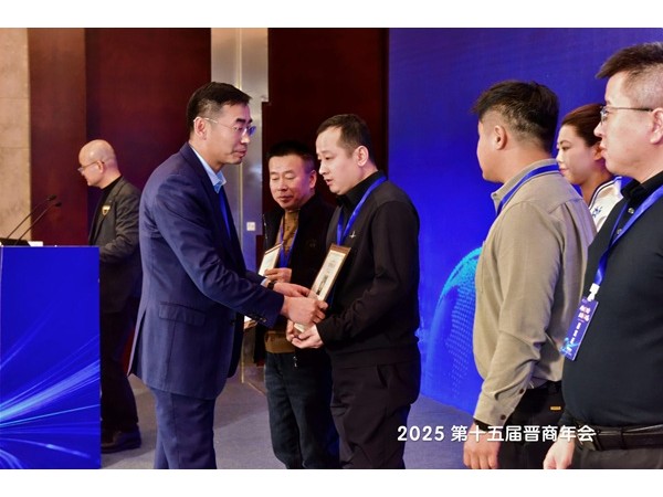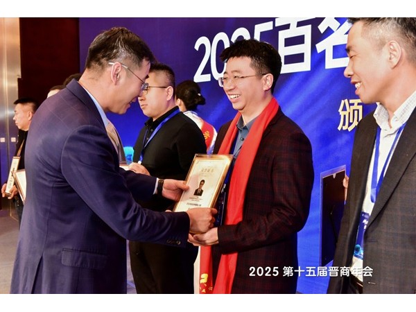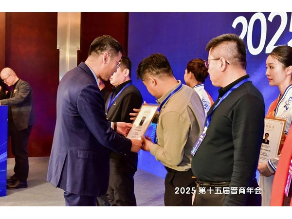 汾阳市万泰置业有限公司董事长李标出席2025第十五届晋商年会 李扩建为其颁发2025百名优秀晋商人物荣誉证书