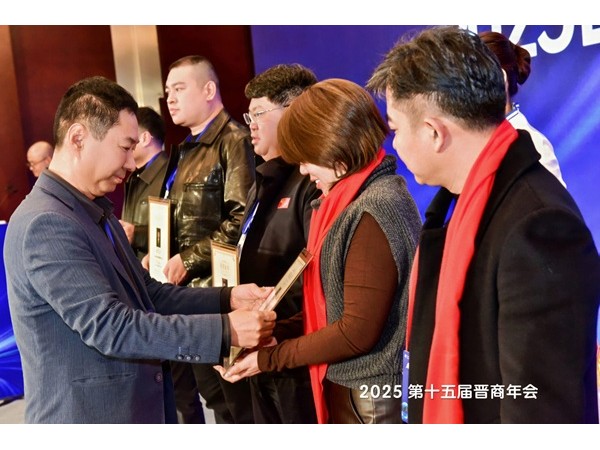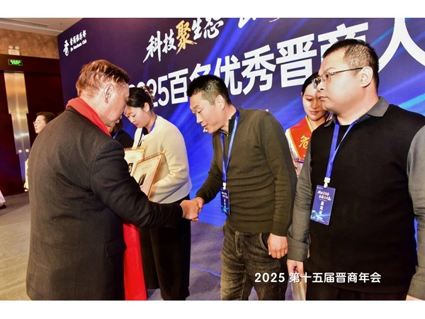 山西鹰盾建材有限公司总经理丑阔出席2025第十五届晋商年会 杨志慧为其颁发2025百名优秀晋商人物荣誉证书