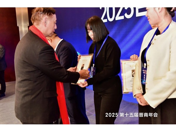 山东语润教育咨询服务有限公司总经理肖瑶出席2025第十五届晋商年会 李扩建为其颁发2025百名优秀晋商人物荣誉证书