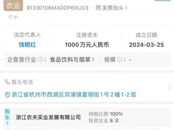 农夫山泉成立新公司,首富钟睒睒,任新职!