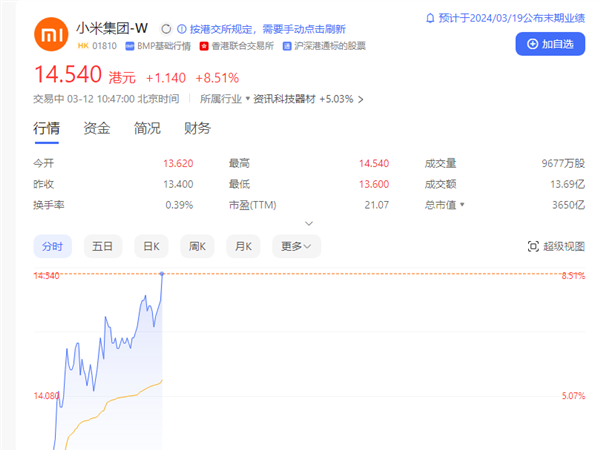 小米汽车3月28日上市:小米集团股价应声暴涨超8.5%!