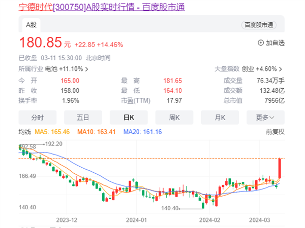 宁王要归来!宁德时代股价大涨超14% 被称行业首选股票