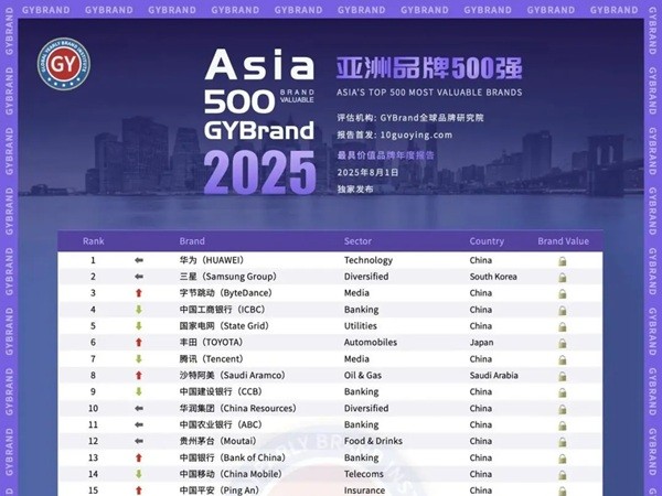 山西汾酒、晋能控股、焦煤入围!2025亚洲品牌价值500强榜单出炉