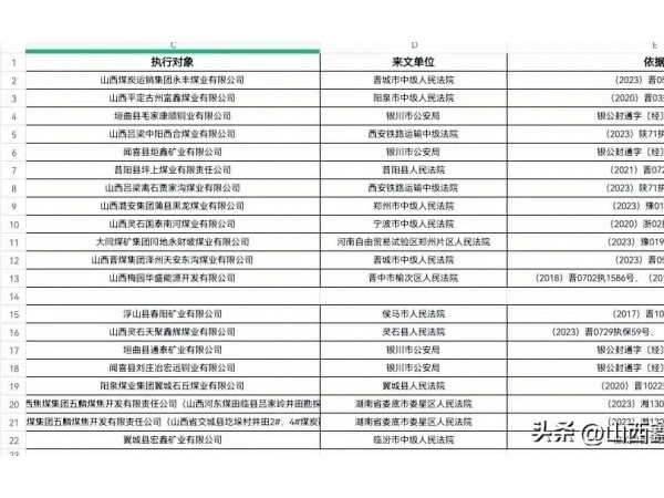 9月份因合同纠纷遭法院查封的山西煤矿采矿权名单