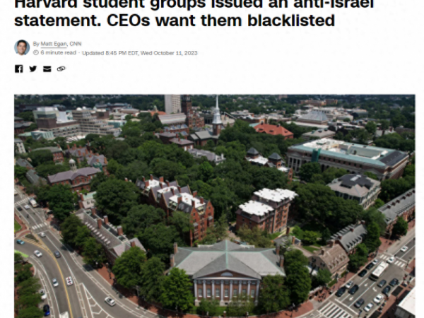 哈佛大学学生联署“以色列应负全责”,捅大娄子了,说好的言论自由呢?