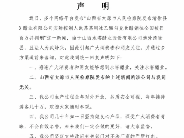 山西醋 请放心买!山西多家醋企发声明!