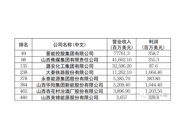 山西8家企业上榜2023年《财富》中国500强
